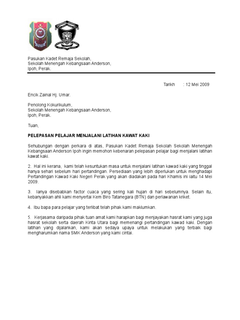 Perjuangan menempuh pendidikan akhirnya. Tuan MEMOHON PELEPASAN SEKOLAH AGAMA UNTUK LATIHAN SUKAN SOFBOL. 5 Contoh Surat Rasmi Tidak Hadir ke Sekolah Kerana Sakit.